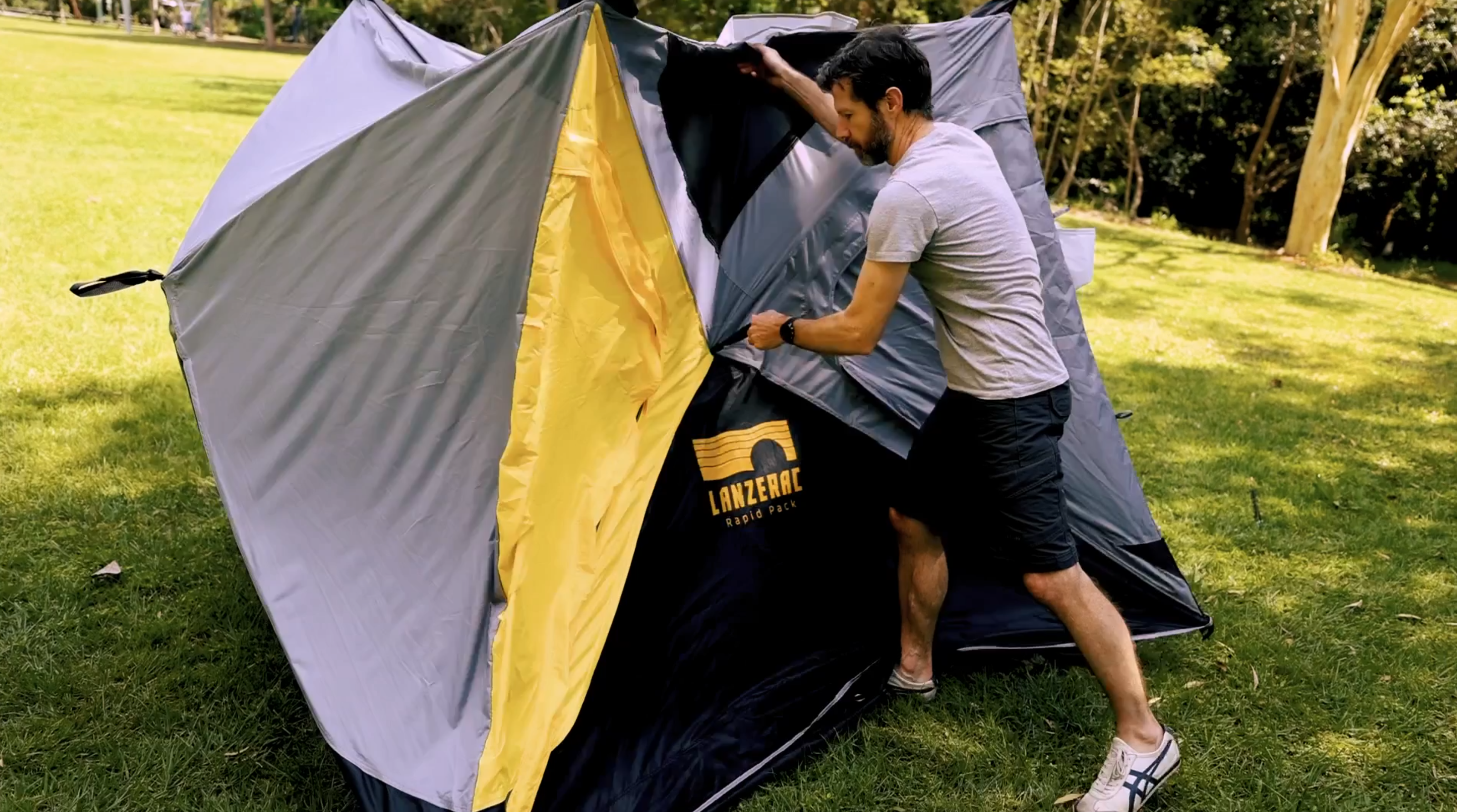 Get set up then sit back, relax and watch your mates struggle to set up their old-school tent.